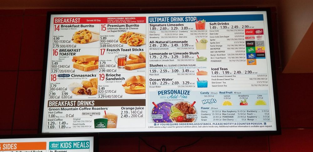 Sonic Drive-In VA Menu